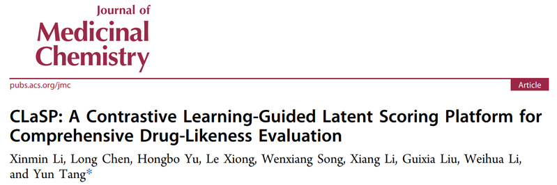 近日,我校药学院唐赟教授团队在Journal of Medicinal Chemistry上发表了题为“CLaSP: A Contrastive Learning-Guided Latent Scoring Platform for Comprehensive Drug-Likeness evalsuation”的研究论文。该研究报道一个全新的成药性预测模型,通过整合ADMET性质、理化性质以及可合成性,为候选药物分子带来更综合、更具解释性的成药性评分。