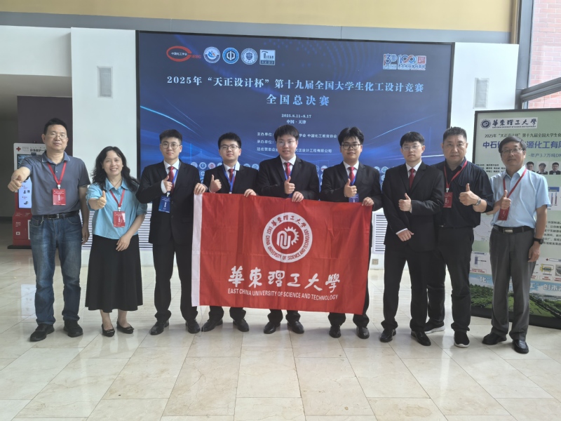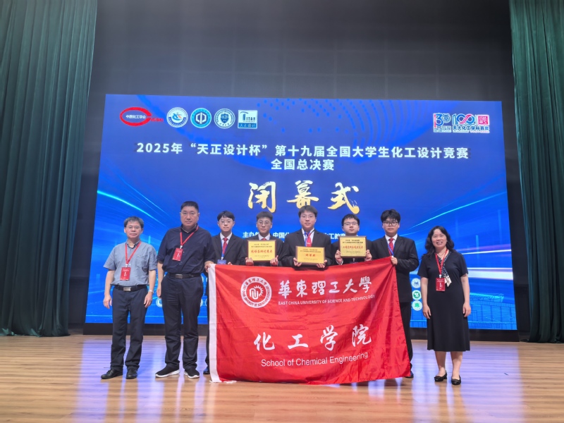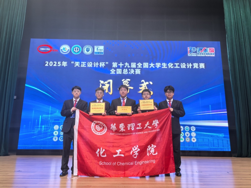 8月17日,由中国化工学会、中国化工教育协会主办,天津大学承办,浙江省天正设计工程有限公司冠名赞助的2025年第十九届全国大学生化工设计竞赛全国总决赛在天津大学北洋校区胜利落幕。从国内赛道七大赛区456所高校的2571支成功提交作品的队伍中胜出的72支参赛队伍和从国际赛道胜出的1支参赛队伍,在设计文档质量、工程图纸绘制、现代设计方法应用和现场答辩等4个环节中进行激烈角逐。由我校化工学院2022级学生戴宇珩、周忠成、周治宏、马永全、楼凌轩组成的团队荣获全国总决赛“特等奖”及“现场答辩优秀奖”和“工程图纸绘制优秀奖”两个单项奖(单项成绩前三名)。