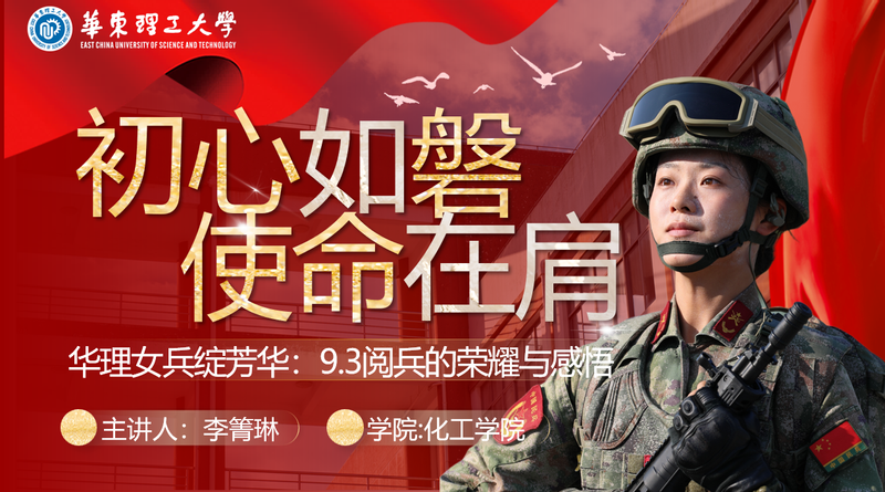 理论宣讲以“爱我国防”为主题,结合生动的国防故事,讲述强军兴国的重要意义。协会副会长、九三阅兵参与者李箐琳军训期间在化工学院开展“执青春之笔,绘强军画卷”国防教育主题党课暨阅兵故事分享会,并与国防协会同学们分享“初心如磐 使命在肩”亲身经历,引导同学们深刻感受国防力量的壮大与军人的责任担当。