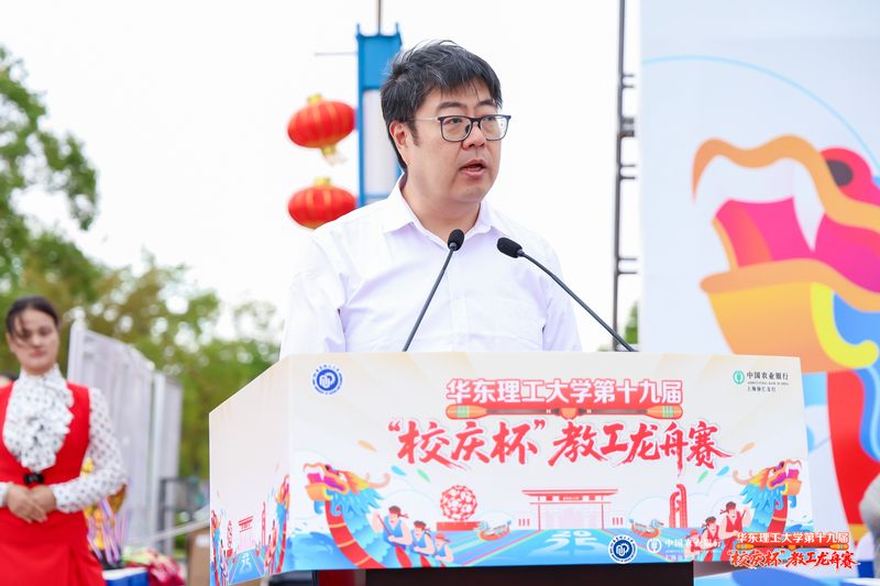 沈海涛在致辞中代表学校党委对龙舟赛的隆重开幕表示热烈祝贺,向全体参赛队伍和运动员致以诚挚问候。他指出,“校庆杯”教工龙舟赛是学校贯彻党的二十大精神和习近平总书记关于建设教育强国、体育强国重要论述、贯彻《“健康中国2030”规划纲要》精神以及落实校第十二次党代会精神的生动实践,是凝聚力量、奋进发展的重要举措。龙舟文化以“自强不息、拼搏奋进”为魂,彰显“同舟共济、奋勇争先”的精神,这与学校“勤奋求实、励志明德”的校训高度契合。他希望全体运动员在竞渡中赛出团结、赛出风采,把拼搏的激情化为推动学校高质量发展的强大动力,以昂扬姿态迎接华理73周年华诞。