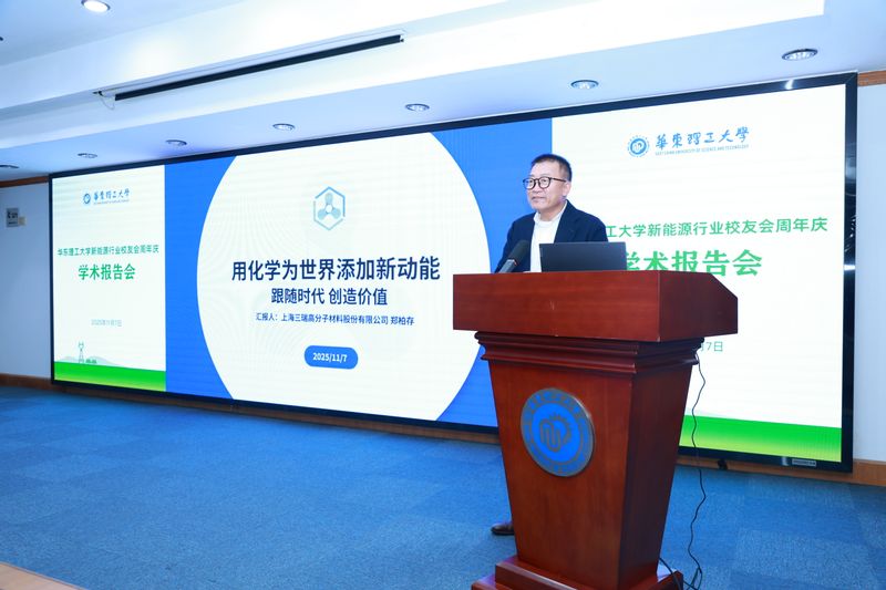 郑柏存校友以“用化学为世界添加新动能”为主题作专题报告,深入剖析智能革命“共生乘数效应”发展下新能源与半导体产业机遇,指出AI与能源需双向赋能以破解“AI能源悖论”。