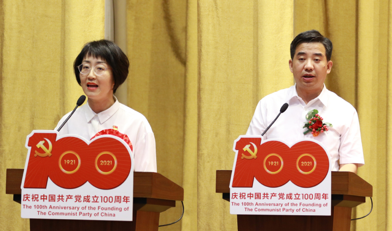 化工学院党委副书记高艺霞和后勤党委书记、后勤保障处处长岳海洋代表优秀党务工作者发言,分别讲述了注重“三全育人”、强化党的建设、引领学生成长成才,以及坚守抗疫一线,护佑师生健康安全,以高质量党建引领后勤改革发展的故事。