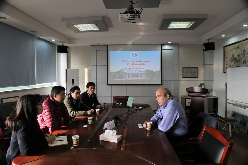 Professor Krishna Kaushik from the University of Houston paid a visit to  the School of Chemical Engineering, ECUST on Dec. 7th, 2016. Professor Zhao Shuangliang, and Wu Yanyang, Vice Dean and Assistant of the School of Chemical Engineering welcomed the American guests and they held a publicity seminar on the  cooperative exchange program.