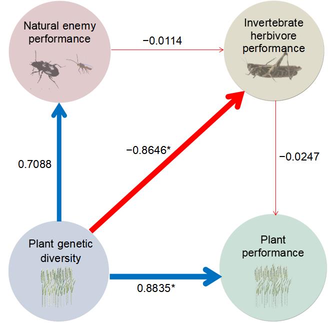 Recently, together with researchers from Italy, Denmark, the United States and Germany, the research group of researcher Wan Nianfeng of the School of Pharmacy put forward the hypothesis of downward pest control by using plant genetic diversity, which was published in Nature Communications, a sub-journal of the international comprehensive famous journal. The article  was entitled “Plant genetic diversityaffects multiple trophic levels and trophic interactions”.